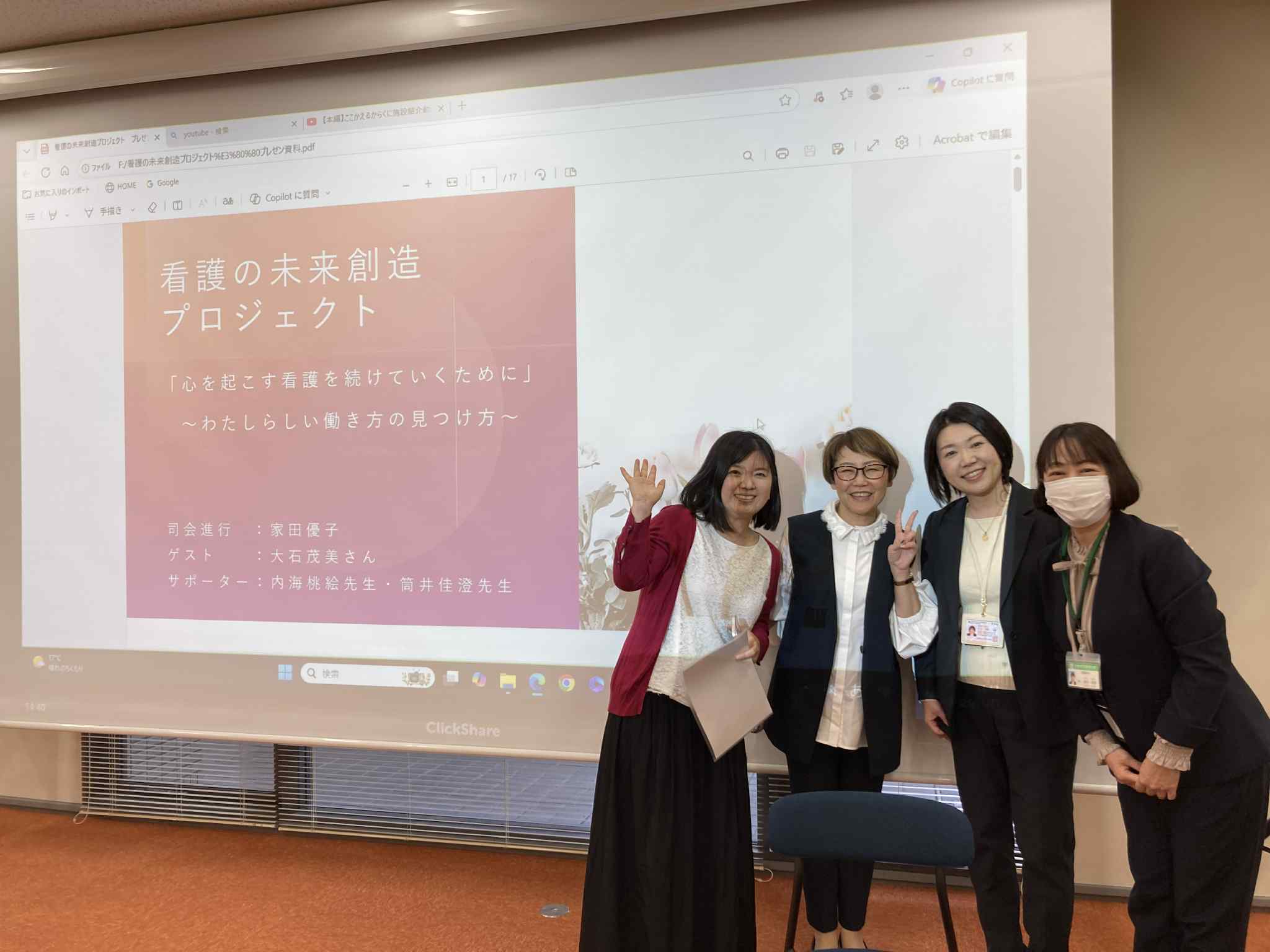 ゲストの大石茂美さん、内海先生、筒井先生と一緒にイベントの流れを最終確認。